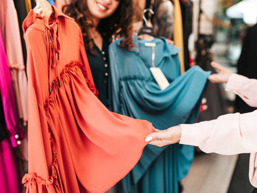 事前に目的を伺ったうえで、イメージコンサルタントがご案内するルートを一緒に巡ります。お洋服や小物を試着したり見比べたりしながら、「似合う・似合わない」の基準や、自分に合うお店を知っていただけます。